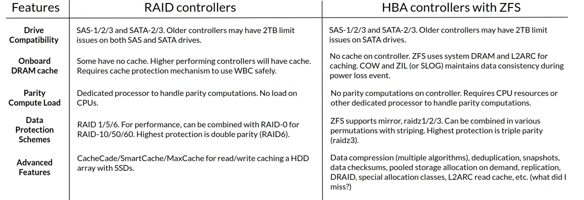 hybrid hardware (HBA) + software (ZFS) solutions is more flexible than a hardware only RAID solutions -> Software can be easily improve, enhanced or replaced entirely
